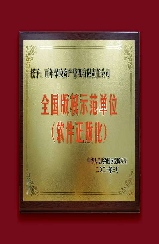 百年保险资管荣获“2020年度全国版权示范单位(软件正版化)荣誉称号”