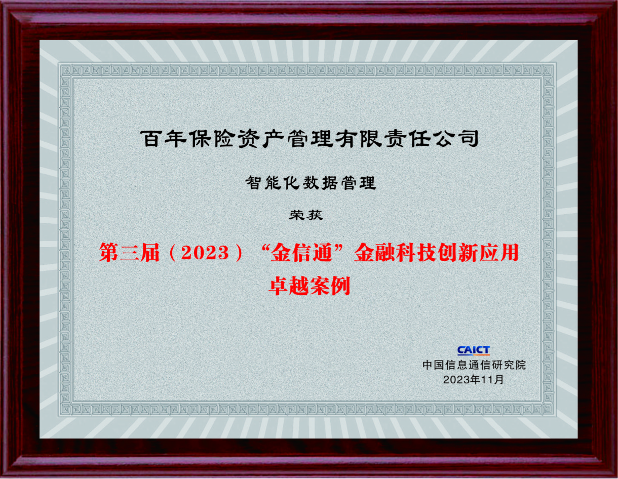 百年保险资管公司荣获2023(第三届)“金信通”金融科技创新应用卓越案例奖